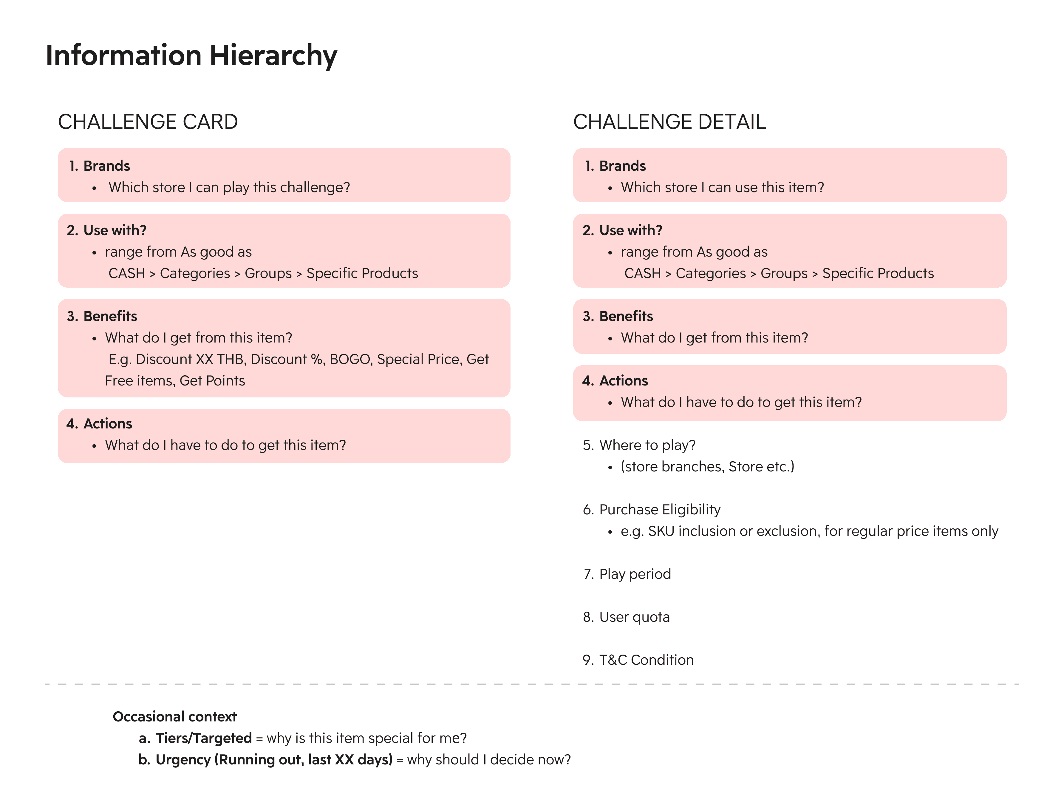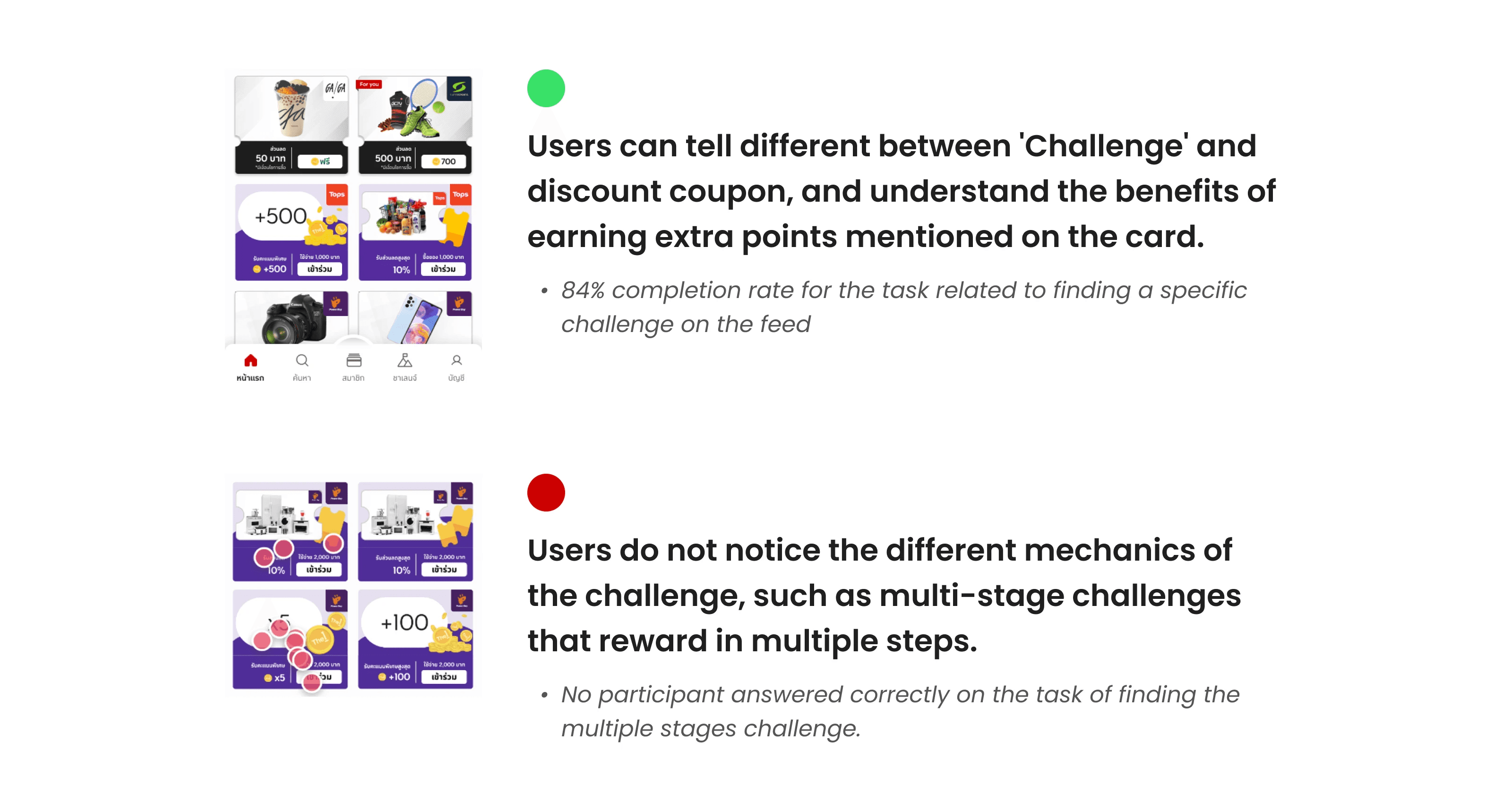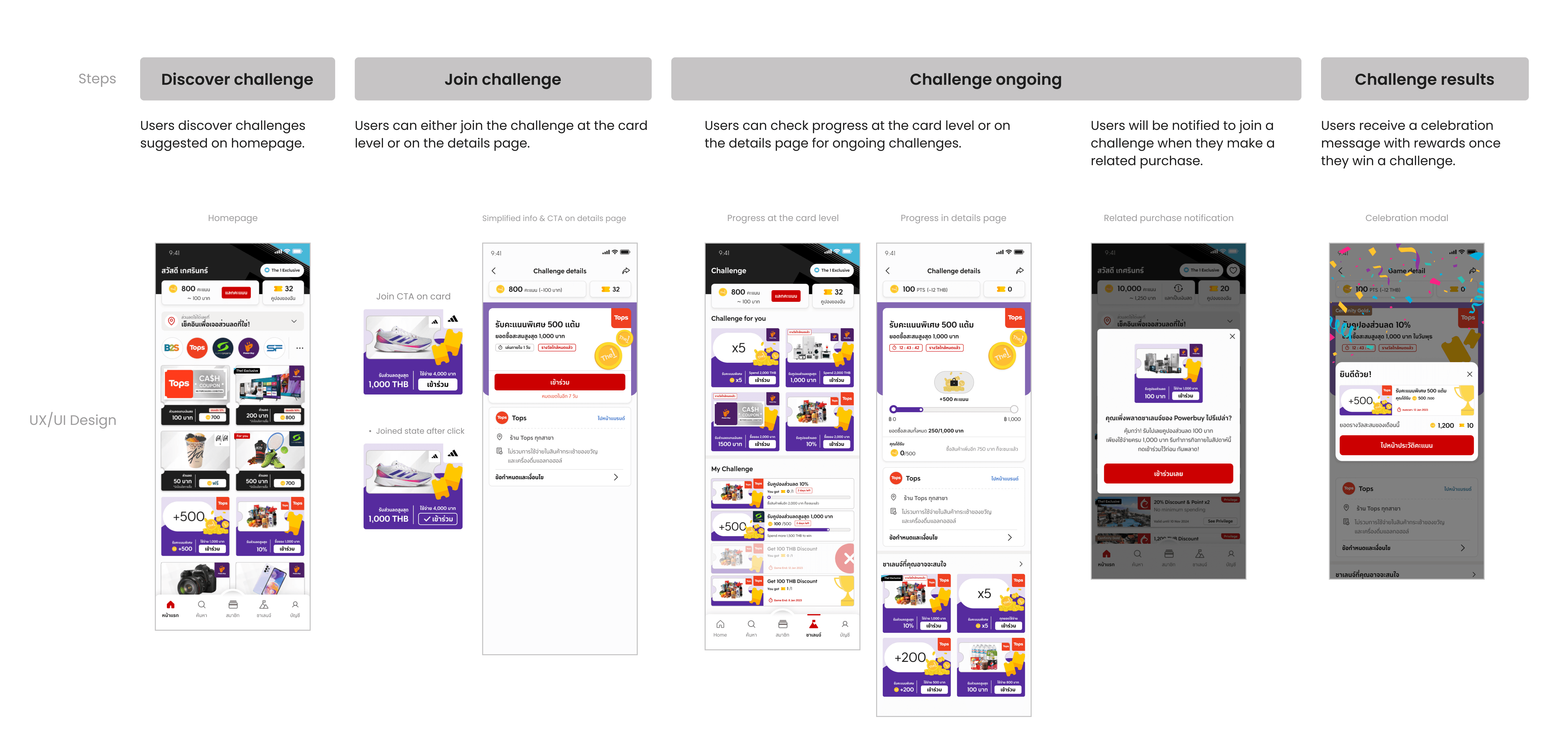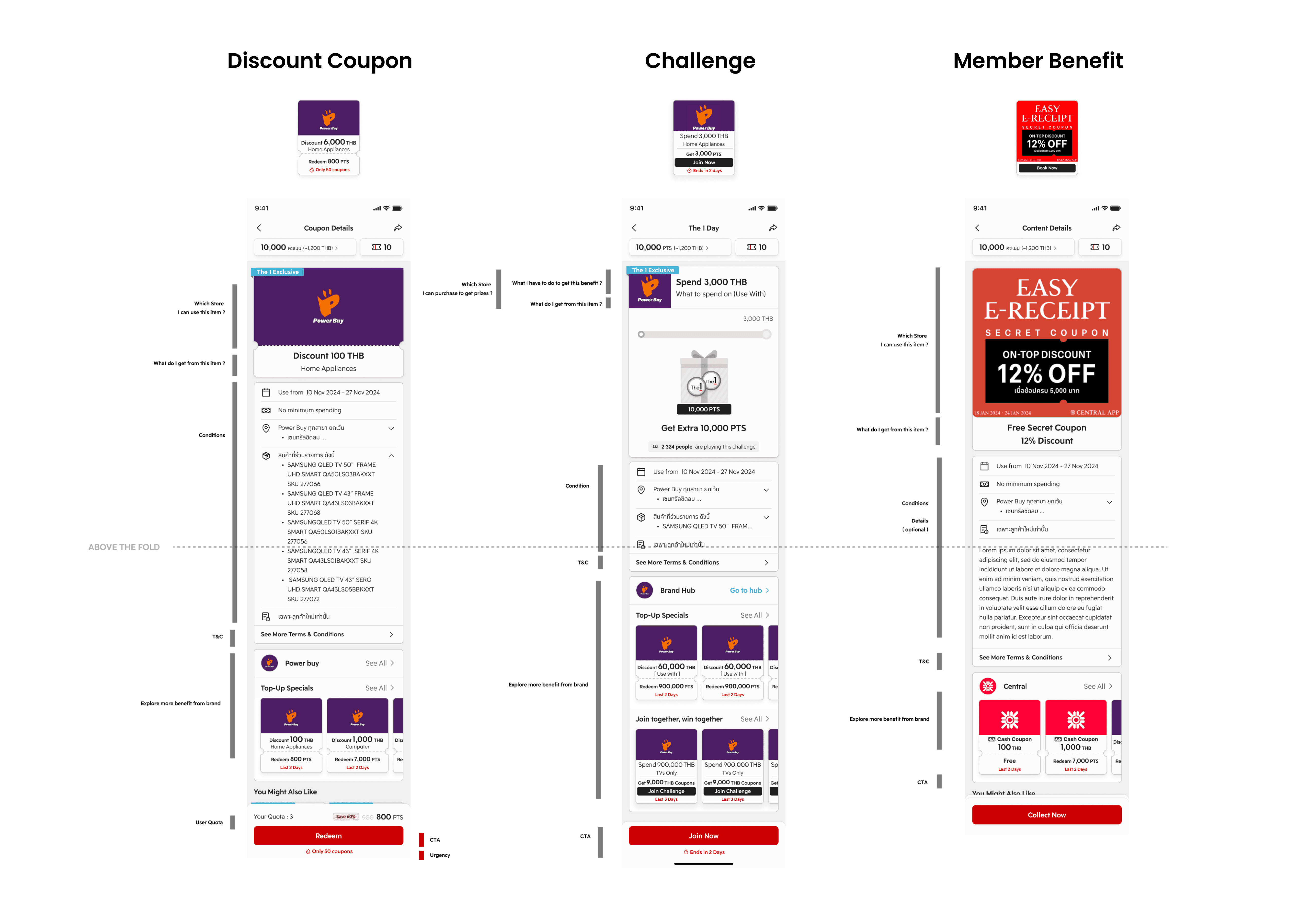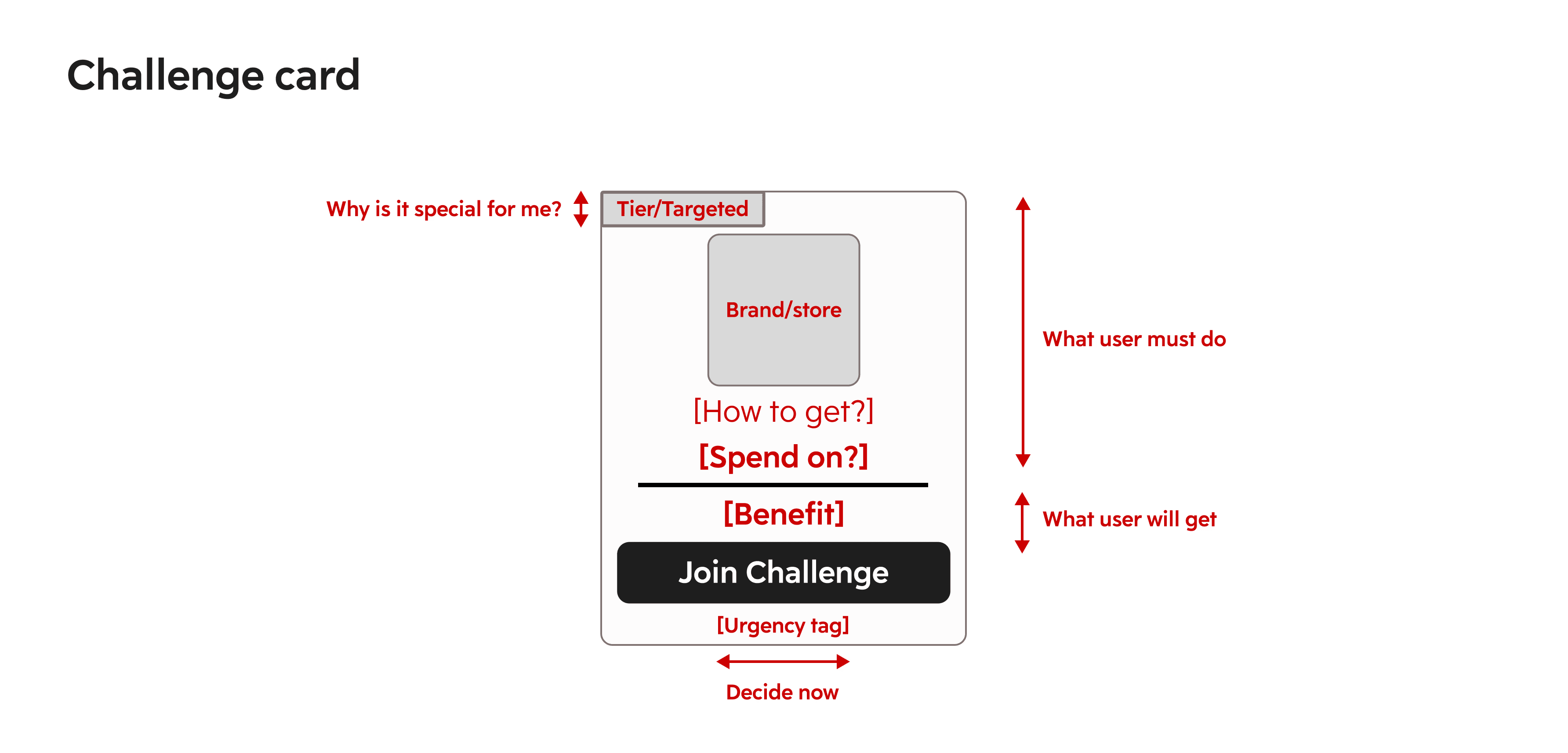 After usability testing, we simplified the Challenge card and details screen. We aligned the layout , reused shared components from Coupon/Cash Coupon for consistency, and removed nice-to-have items that slowed development. These changes kept the solution feasible and helped us launch on time for the May 2024 campaign.